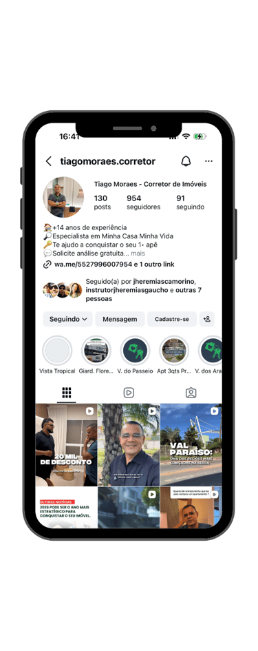 Você recebe a estrutura completa para transformar seu perfil em um canal que trabalha para atrair clientes.